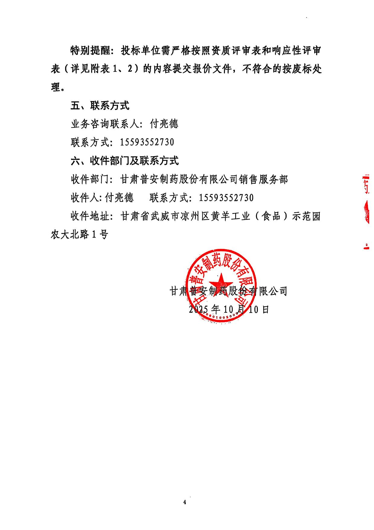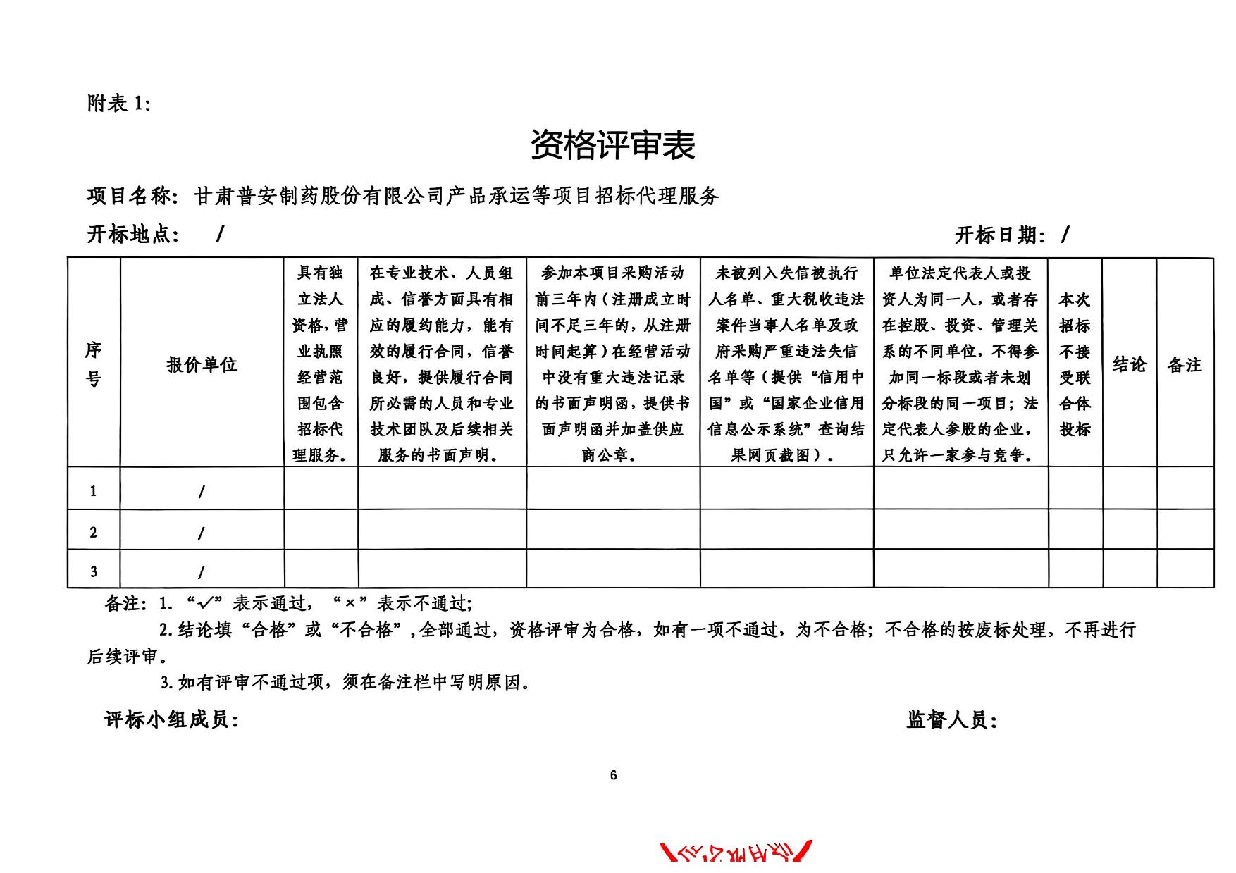 甘肃普安制药股份有限公司产品承运等项目招标代理服务招标公告