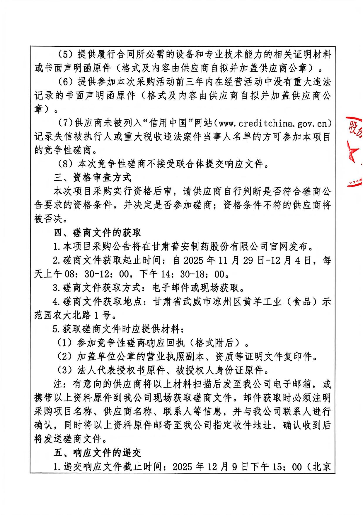 甘肃普安制药股份有限公司大宗中药材农药残留数据分析系统采购竞争性磋商公告