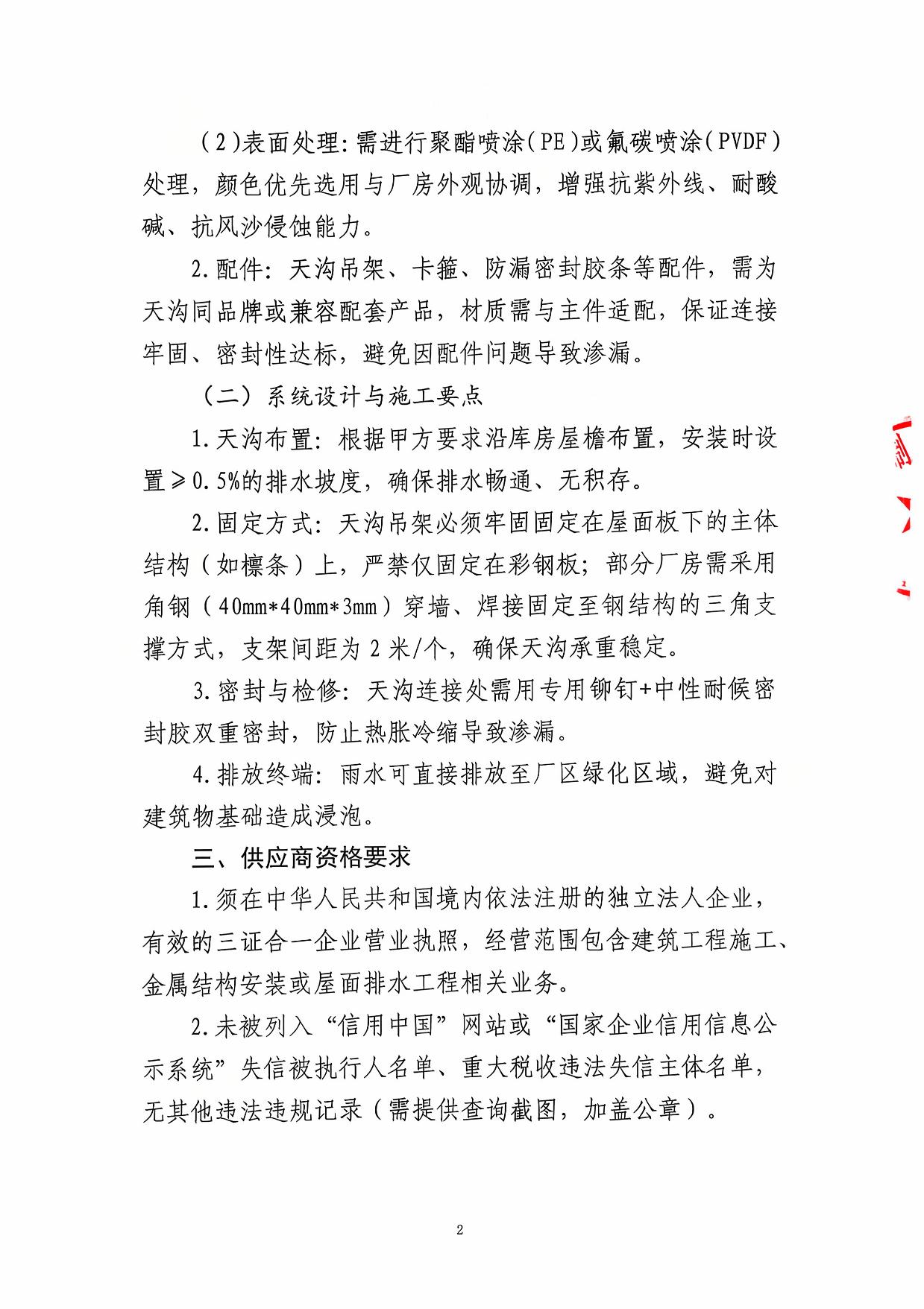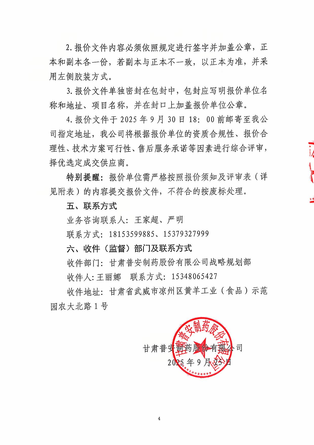 甘肃普安制药股份有限公司前厂区库房入口增设天沟工程询价公告