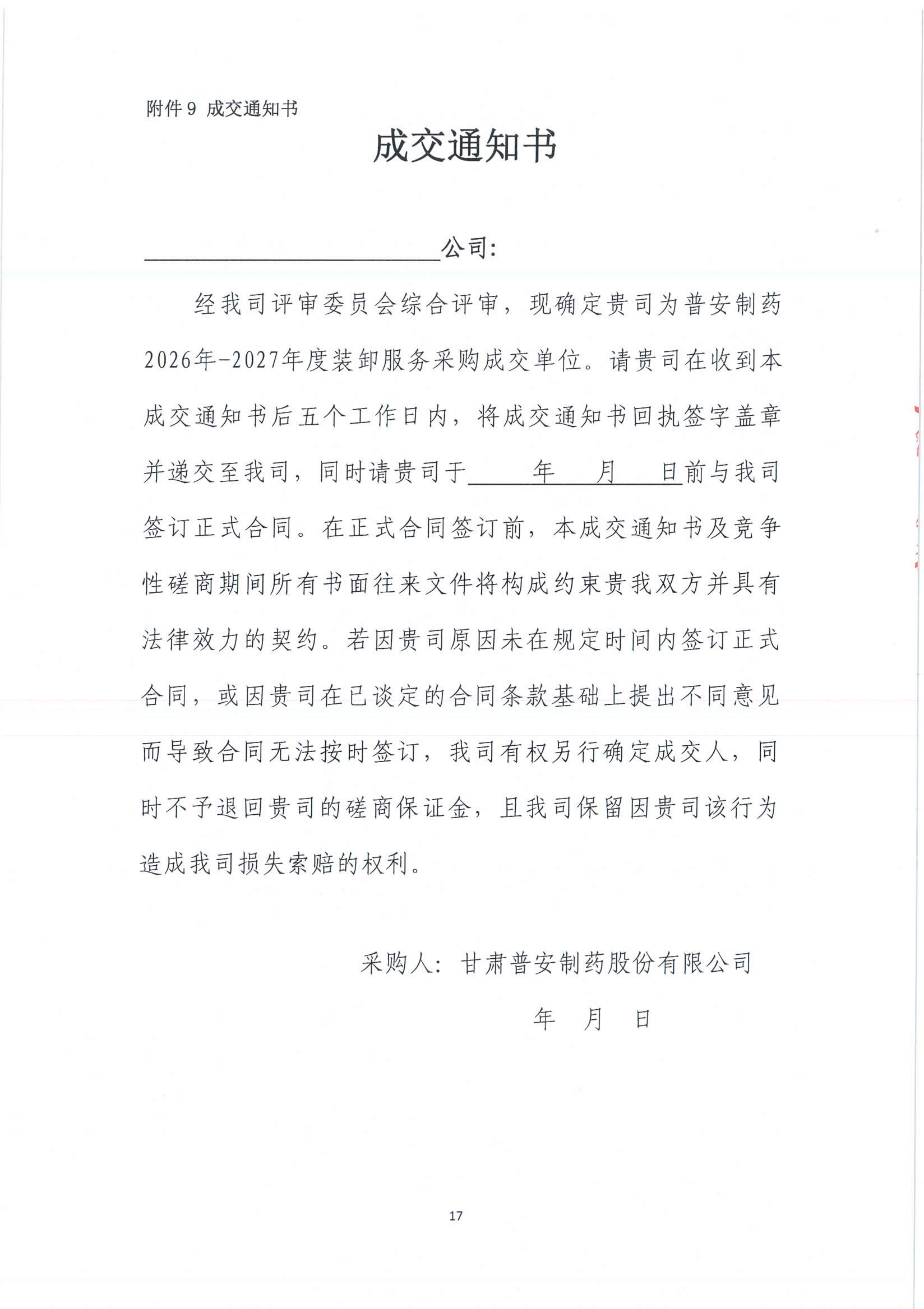 甘肃普安制药股份有限公司装卸服务竞争性磋商公告
