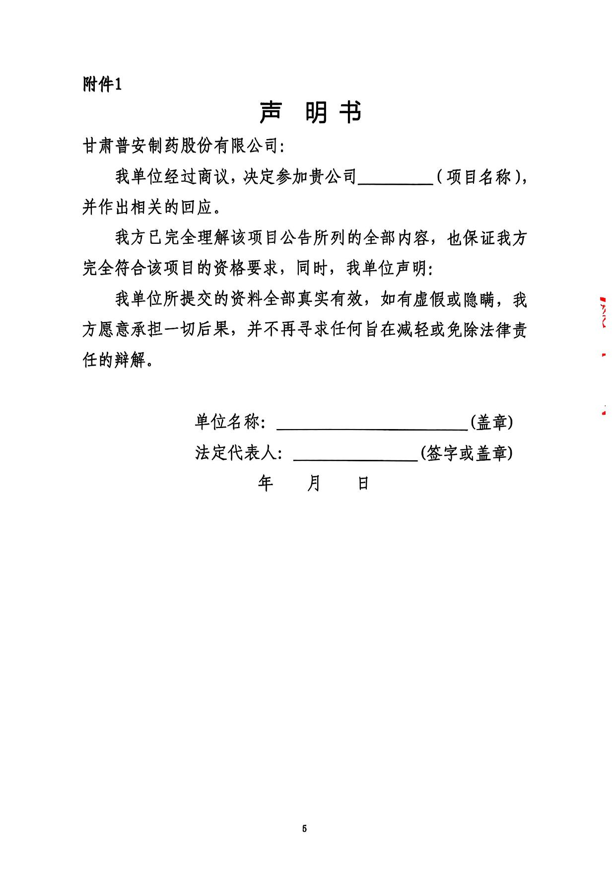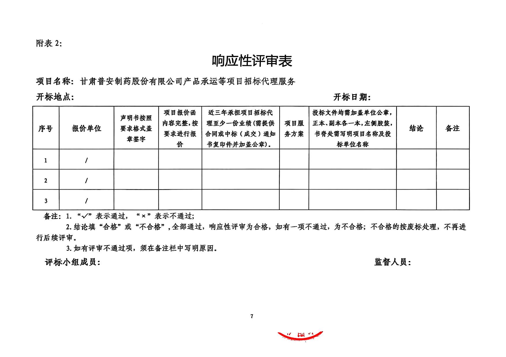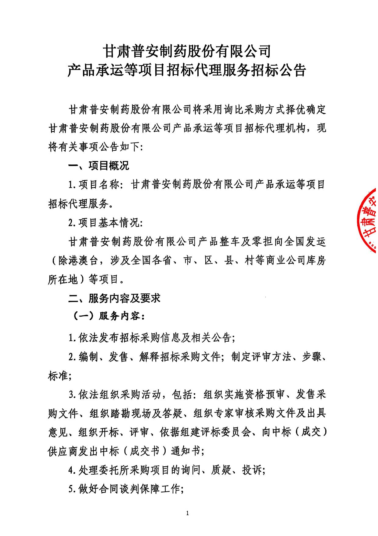 甘肃普安制药股份有限公司产品承运等项目招标代理服务招标公告