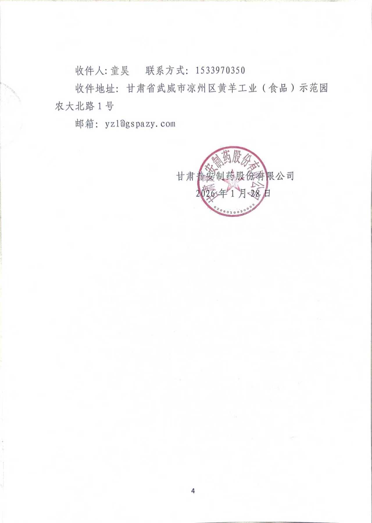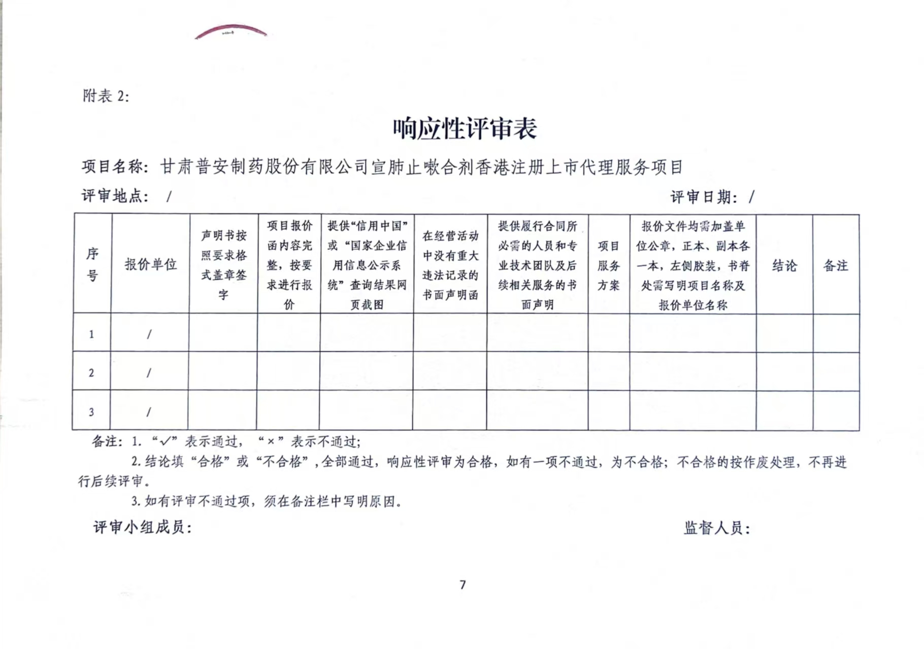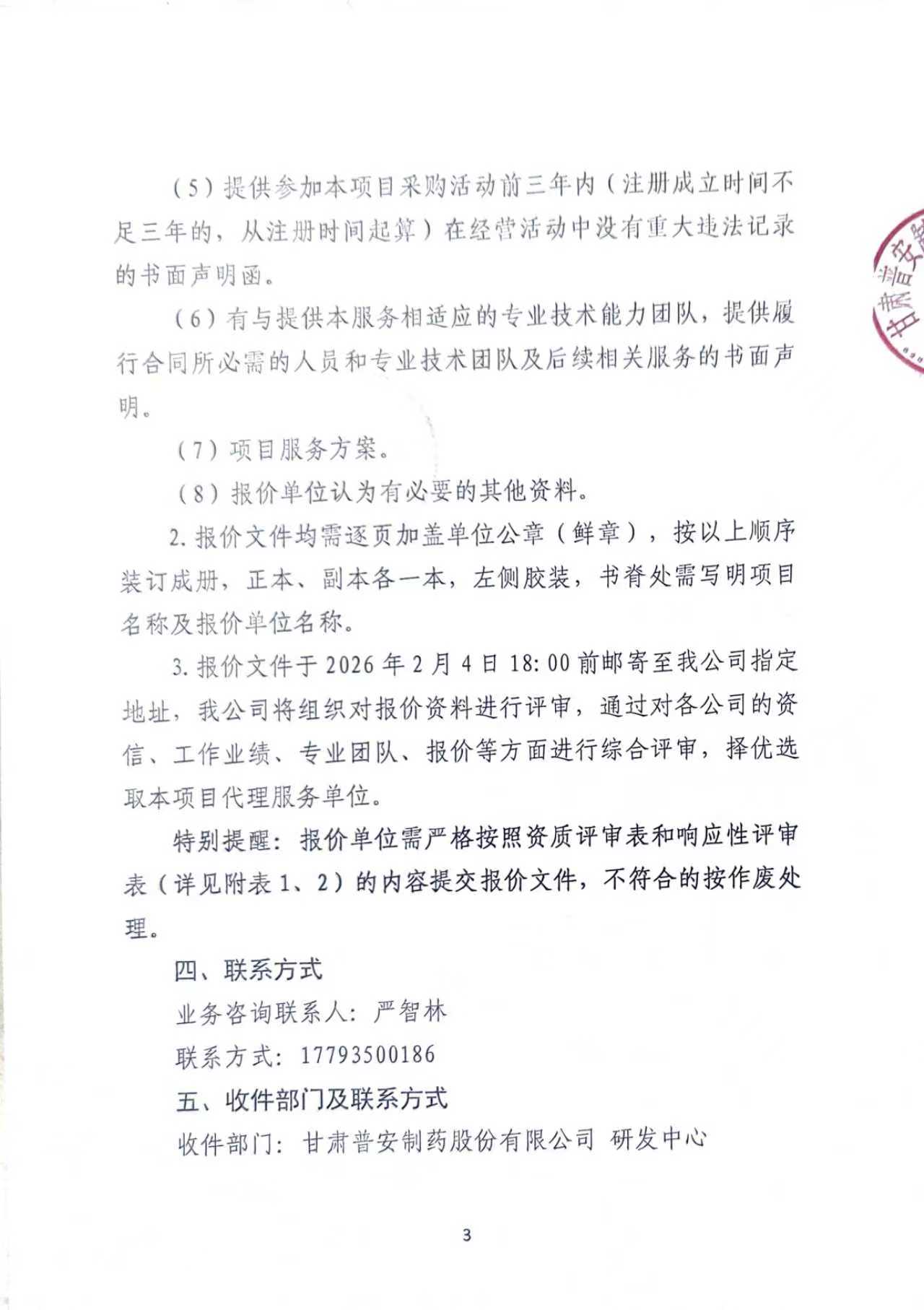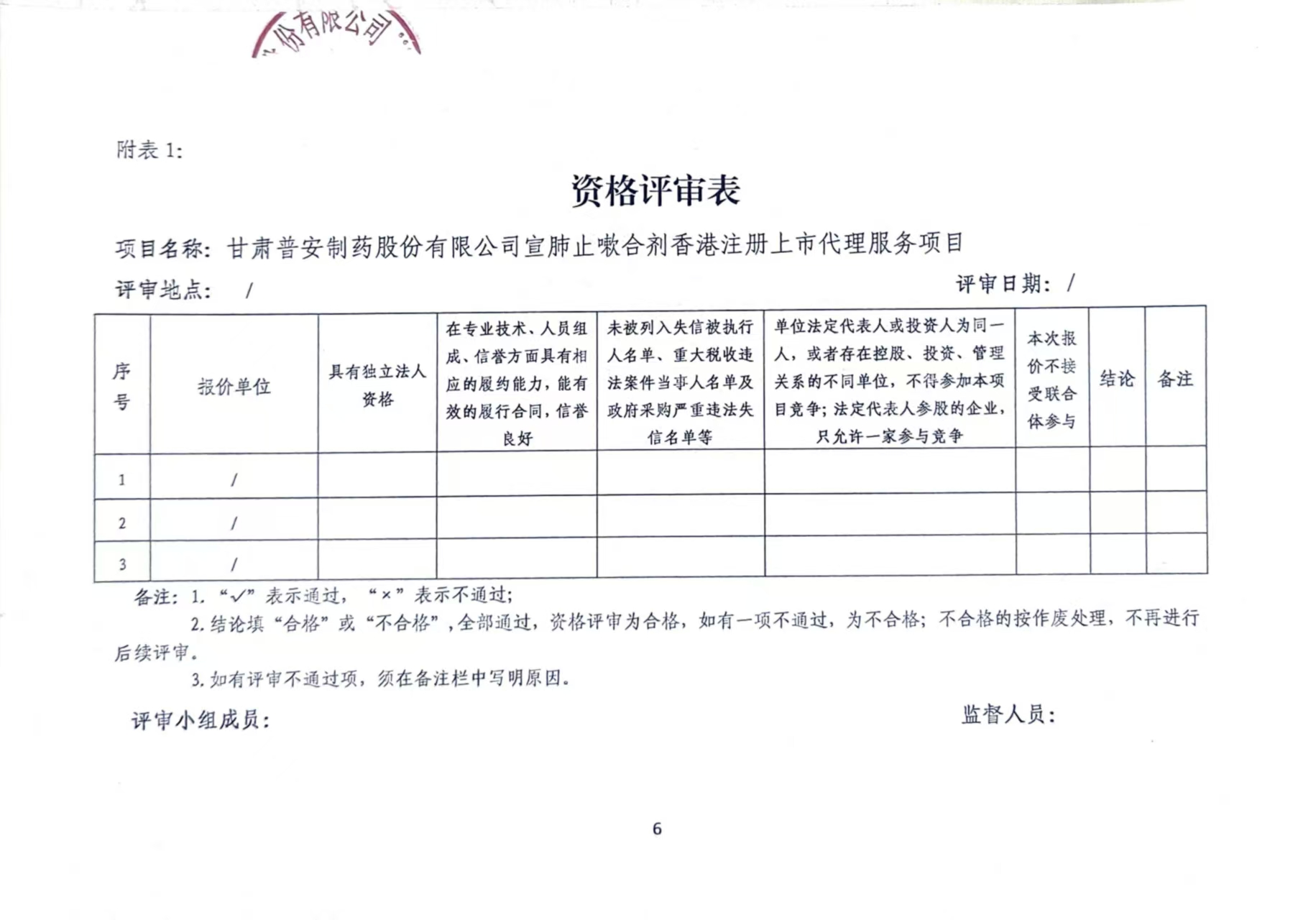 甘肃普安制药股份有限公司宣肺止嗽合剂香港注册上市代理服务机构选择询比价公告