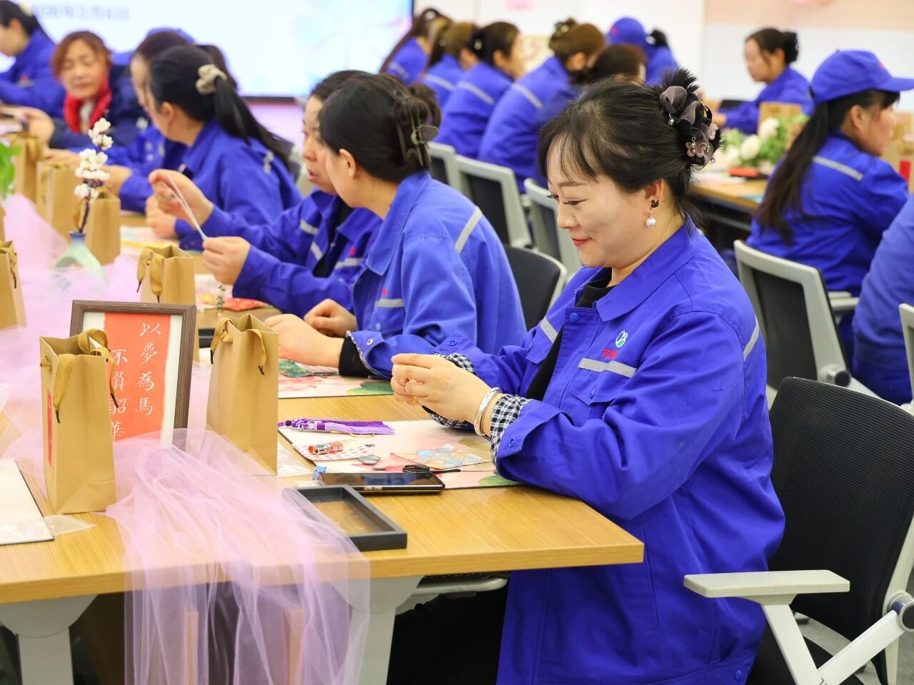 人间三月,芳华绽放。为庆祝第116个“三八”国际劳动妇女节,丰富公司女职工精神文化生活,弘扬中华优秀传统文化,进一步增强女职工文化认同感、归属感与团队凝聚力,3月6日,普安制药工会以“凝聚巾帼力量,传承文化薪火”为主题,在三楼会议室精心组织非遗文化体验活动。全体在岗女职工欢聚一堂,共赴一场传统与美好交织的节日之约。